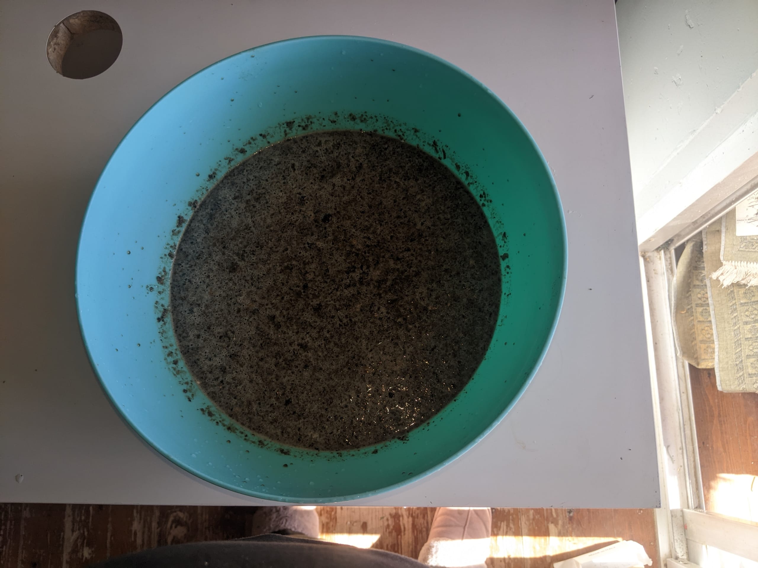 Put the truffle trimmings (or spores in soil) in a clean bowl add the water and the fructose. Blend the mixture with a hand blender if you have one. I don’t so I use a regular blender and have to make the slurry in batches.
