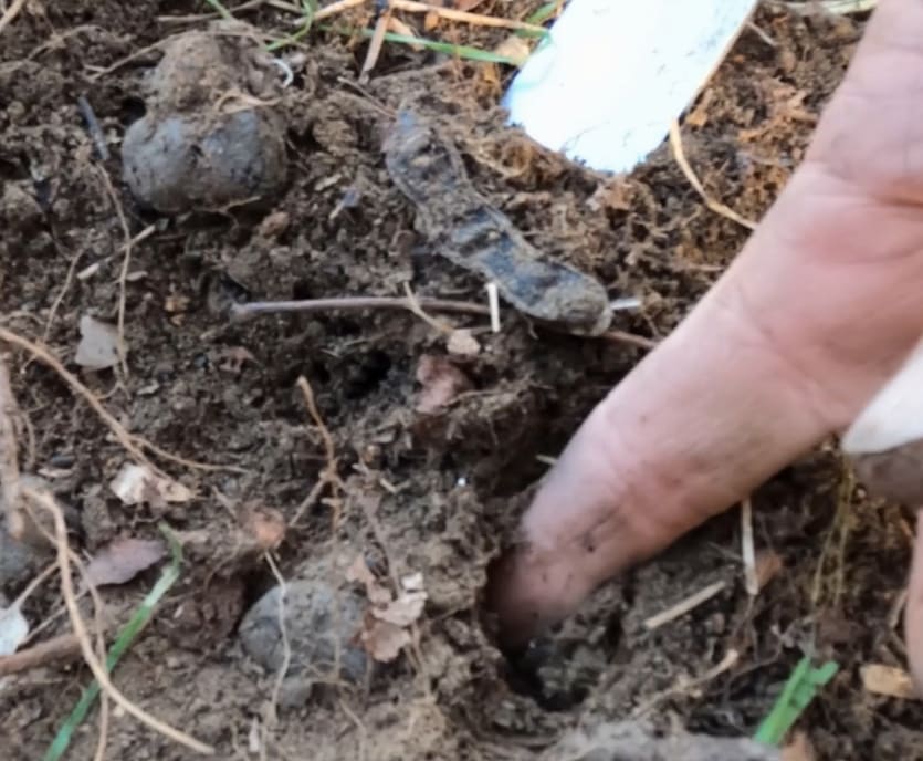 We got to work immediately on clearing the forest which is a huge task after over a decade of neglect. These old varieties of hazel tree are spread out and require more pruning than the compact modern varieties. As well as working with the trees, we have been adding spores to the soil in areas where truffles are still growing and spots where they used to grow. This spore mixture is a simple concoction of dried truffle scraps blended with fructose, spring water and vermiculite. It is fed to the trees while we tend to the task of creating the right kinds of growing conditions for healthy truffle production. This might involve tweaking the shape of the tree and the amount of light that can get through the canopy. We know that some ground covering is favourable, possibly helping to regulate temperature but we don’t want too many weeds underfoot.